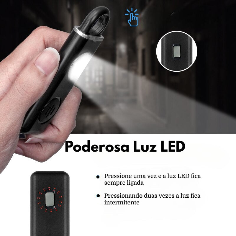 ✅ Sirene Poderosa de 130dB – Garante que você será ouvida mesmo a uma distância considerável.